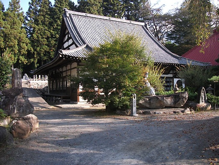 比較的新しい本堂。春には水子地蔵の横で見事な枝垂れ桜が楽しめる。