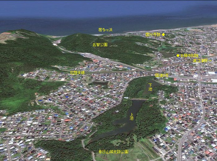 城氏が本拠を置いた越後国府 直江津(上越市)。親鸞が暮した地には本願寺別院がある。