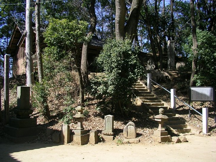 観音堂から右手の石段を登り、古墳後円部の頂上に建つ十二所神社へ。