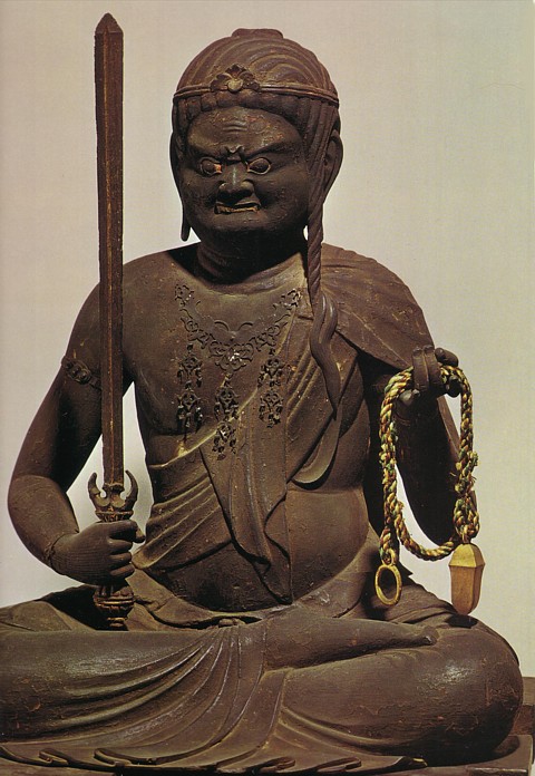 参考に京都大覚寺の中尊不動明王像を。明円作・京都大覚寺収蔵の重要文化財、木造・彩色 で高さ51.5cm。