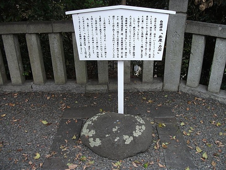 社殿の右手には弁慶の力石。首だけ流れ着いたのに何で石が関係あるんでしょうね。