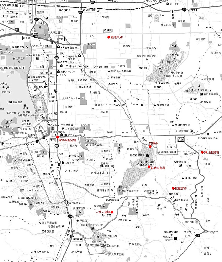 飛鳥宮と藤原宮を含む広域地図