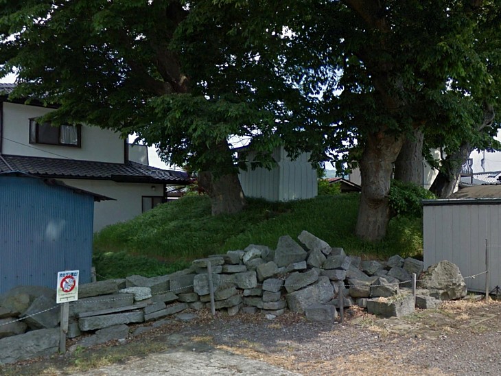 櫓台の跡と伝わる古殿稲荷社。わずかに石積みの名残と土塁の跡が確認できるのみ。