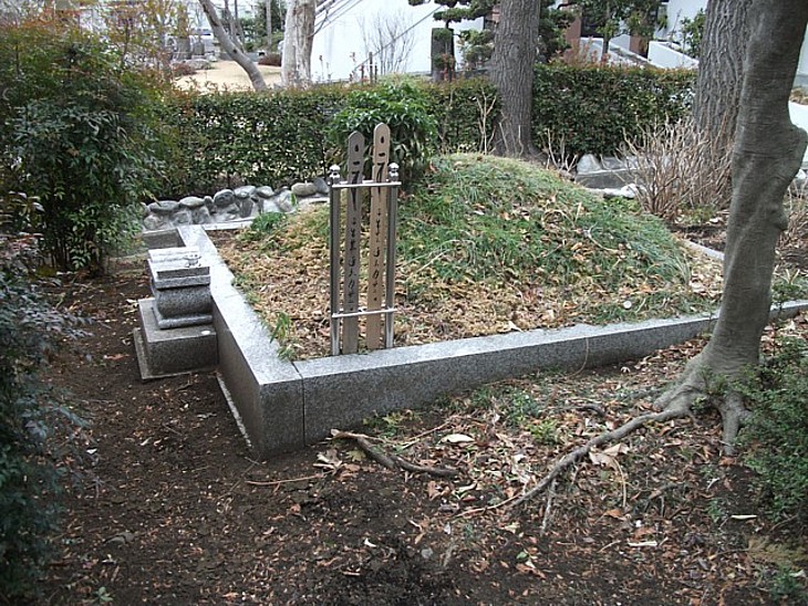 最近になって御影石で囲ったらしい土饅頭B。重忠家臣の誰を葬った塚なのかは判らない。