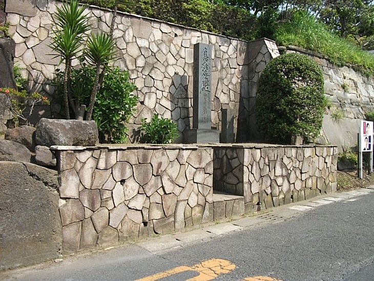 文永八年9月12日、瀧ノ口刑場に向う日蓮が血で汚すのを避けて脱いだと伝わる「日蓮袈裟懸け松」跡の碑。
