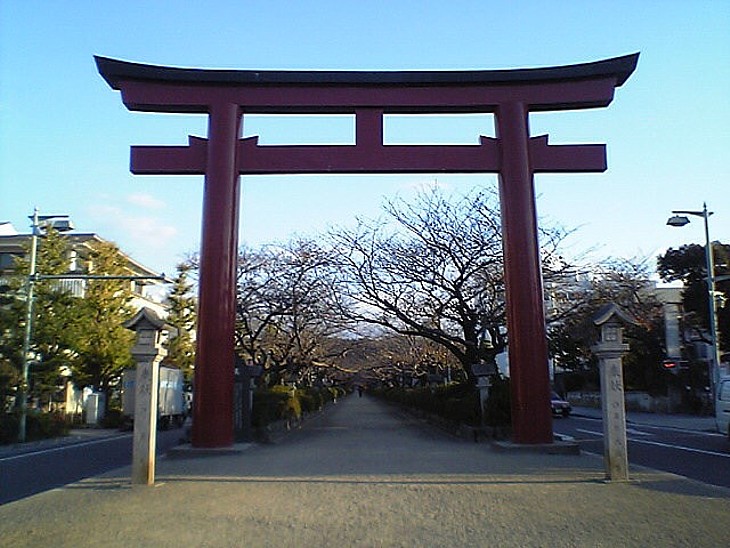 鎌倉駅のすぐ近く、八幡宮前まで約500m続く段葛のスタート地点に聳える二の鳥居。