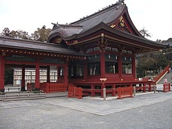 中: 神前結婚式もこの舞殿で、衆人環視(緊張するだろうなぁ)の中で行われる(初穂料は15万円)。衣装や披露宴は挙式する側が手配する。