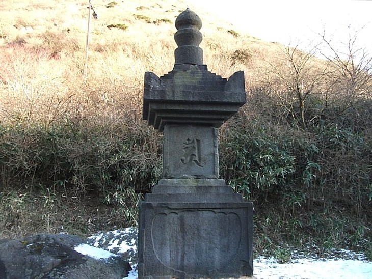 多田満仲の墓と呼ばれた宝篋印塔。高さ3.6m、基壇に文永四年(1296)の銘がある。