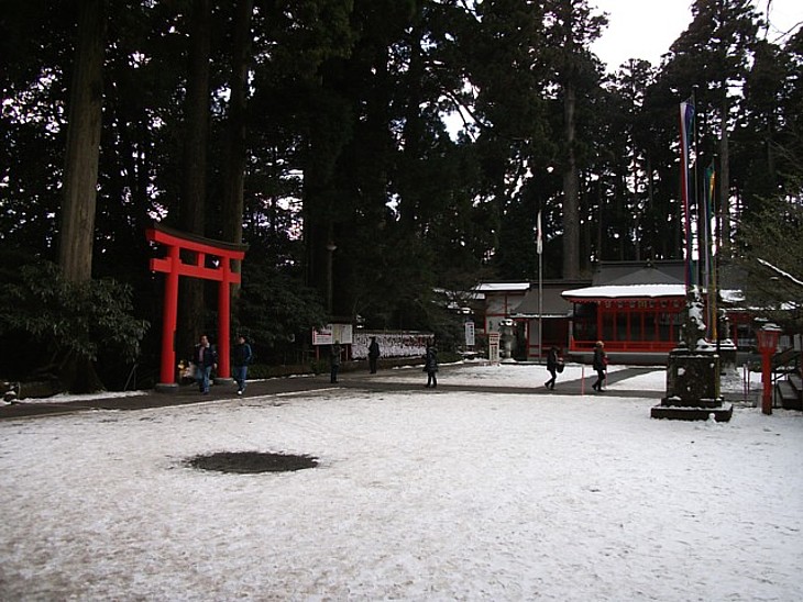 平場左に五の鳥居、突当りに神楽殿と社務所、右手が神門。霊力同様に観光色も強い。