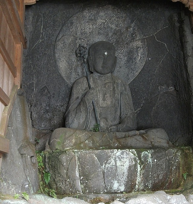 六道地蔵菩薩は正安二年(1300)銘。堂の正面に座ると目線が交わる配置である。