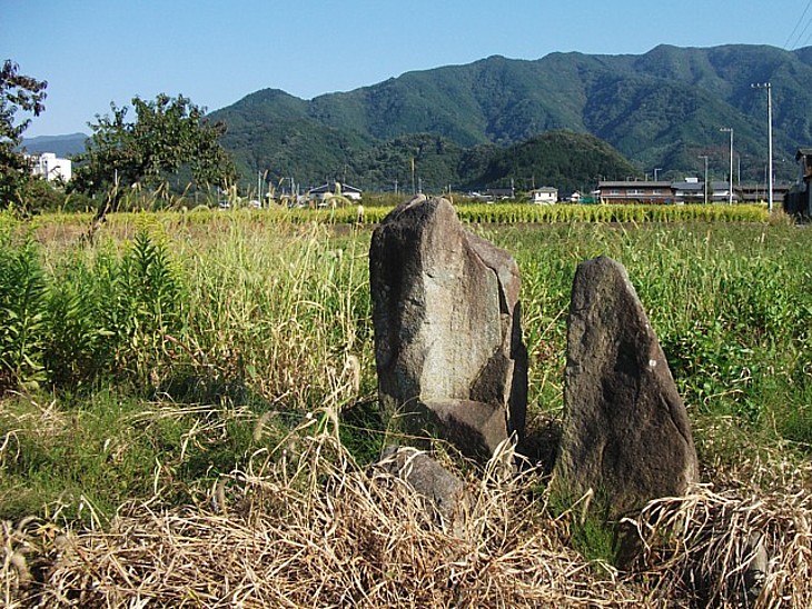 上向山地区に残る伝・坂額の墓石。盾石(立て石?)と呼ばれ、殆ど忘れられた存在だ。
