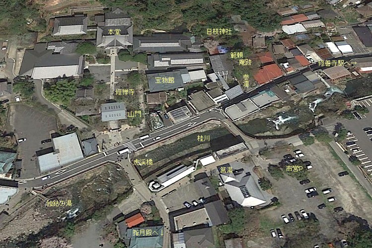 空海伝説から始まって頼家暗殺など数々の歴史と伝説に彩られた修禅寺(正式には福地山修禅萬安禅寺) 鳥瞰
