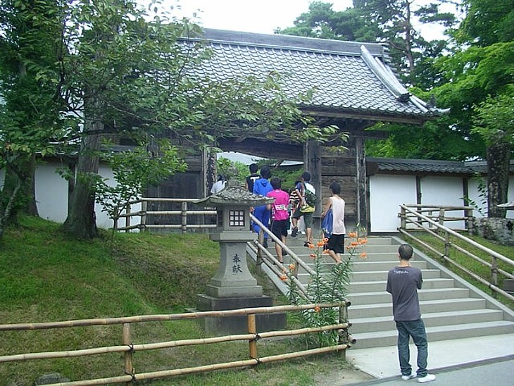 国道沿いの月見坂入口から500mほどの右側、金色堂拝観口の200m手前に中尊寺の本坊がある。