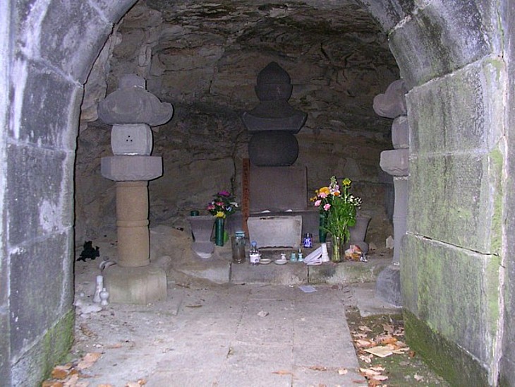 廣元廟所の内部。江戸時代に毛利元就子孫の長州藩(萩藩)が五輪塔と共に造成した。