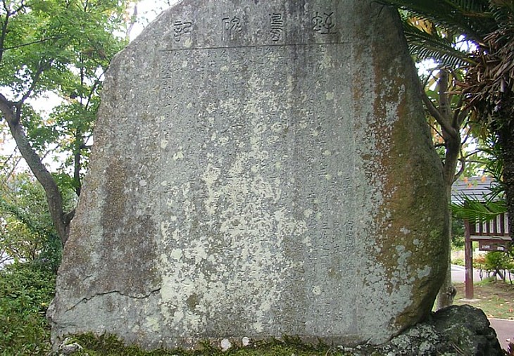 公園中央の蛭島碑記。建立は寛政二年(1790)、これが「頼朝流刑地=蛭ヶ小島」の原点となった。