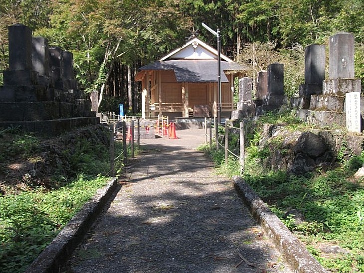 駐車場の先から緩い傾斜が100mほど続く。左右に点在する石造物は富士講の参加者が残した「碑」。