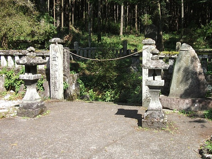 社殿の前に口を開いている「人穴」。原則立ち入りは禁止、巾3m×高さ1.5mの横穴が約90m続く。