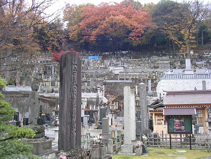 墓苑裏手・南向き斜面の上は織姫山、足利のシンボル織姫神社や織姫公園が広がる。