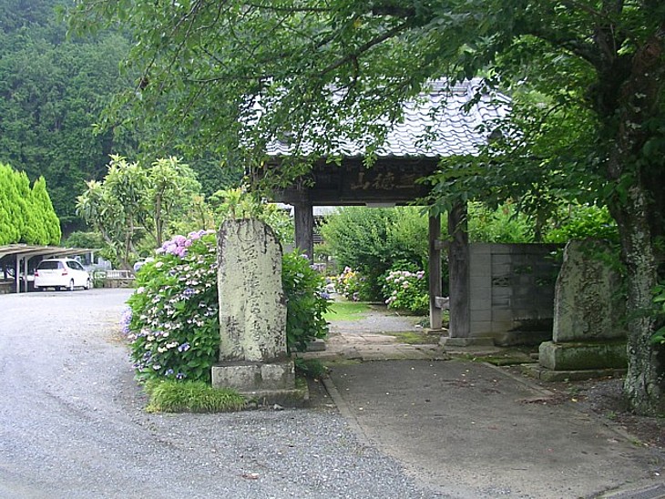 北條寺山門。雰囲気の良い四脚門だが開放的な砂利敷き駐車場の隅にあるため、やや印象が薄い。