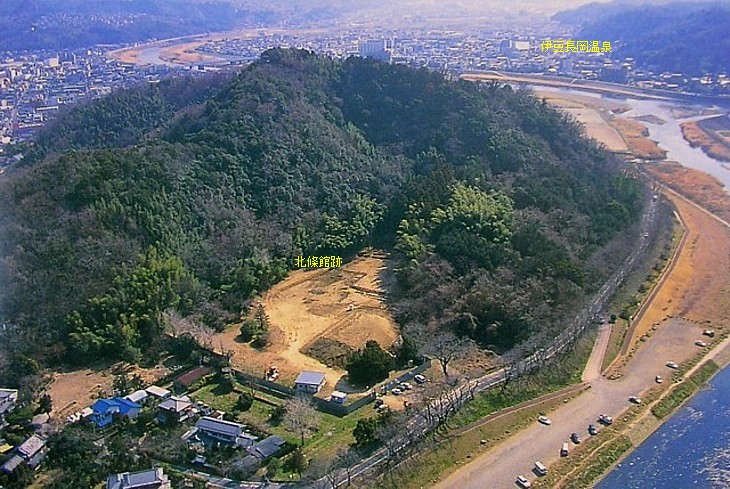 北側から見た守山と北條館跡。左下の道が堀越御所跡を経て東の山裾、光照寺や願成就院に至る。