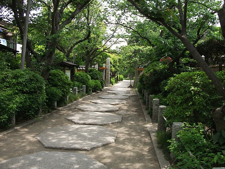 大きな石の参道が珍しい。八幡宮から近いため秋には萩目当ての観光客でかなり混む。