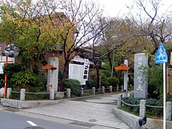 ※大倉亭の位置: 関取場跡の碑 付近が義時の大倉亭跡らしいが住宅密集地なので発掘調査は不可、現地の風景は
