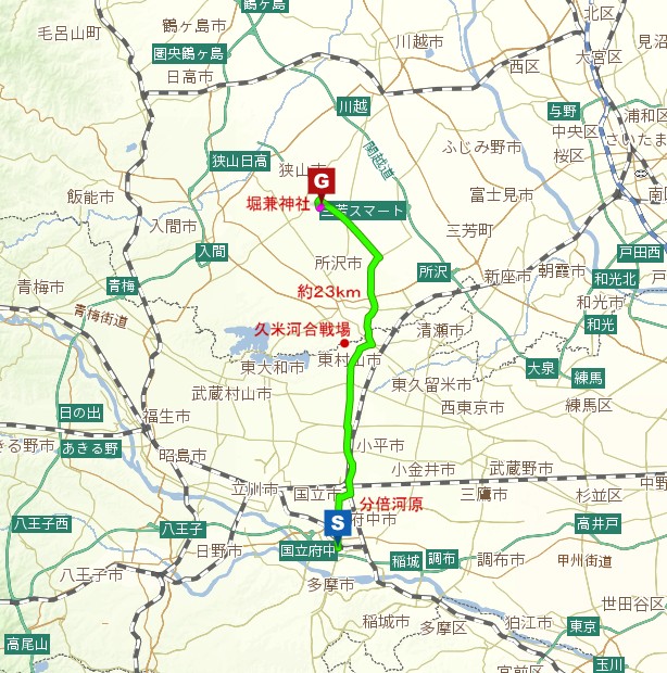 義貞軍は約23km北の堀兼(堀兼)まで敗走、新田への撤退まで考えた、と伝わる。