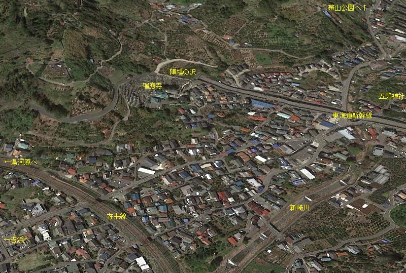 石橋山から逃れた頼朝は土肥堀口でも惨敗、辛うじて死地を脱出し馬を捨てて新崎川上流の椙山へ。