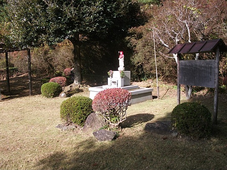 テーマパークの敷地に建つ細窪地蔵尊。大野郷と長者原を結ぶ峠道に祀られている。