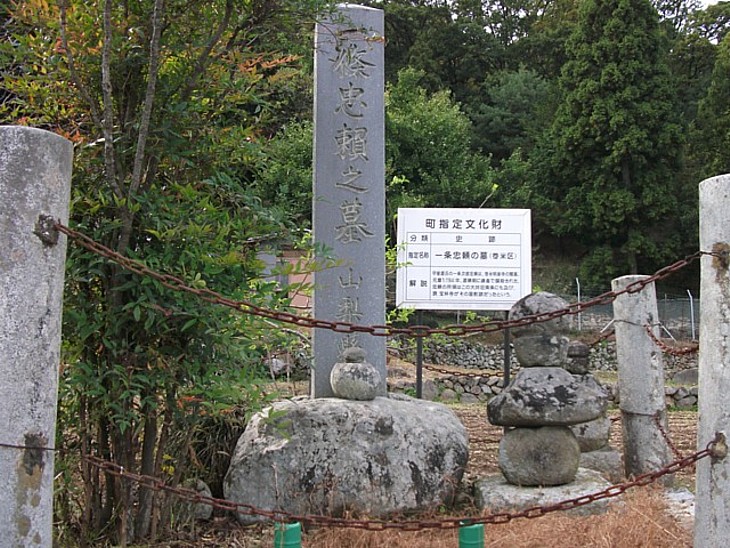 苔むした五輪塔が二基、片方は基台(地輪)が失われ、忠頼の墓標である根拠はない。