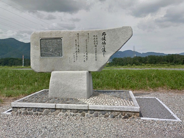 北国街道の丹波嶋宿 開設四百年記念に建立された「丹波嶋の渡し」碑。