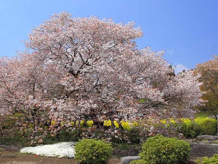 資料から転載した満開の下馬桜。樹勢は衰えているが4月中旬には見事な花を見せる。