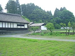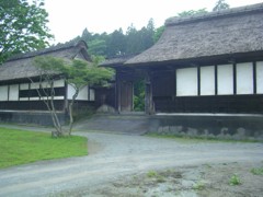 中: 写真の長屋門(高麗門)は南北に各20坪ほどの厩や下男部屋・倉庫などを設けた典型的な豪農の門。これは、一見の価値あり。