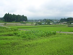 中: 狩宿の前から北東・曽我八幡宮側、兄を討たれた五郎時致が進んできた方向を見る。当時は一面の原野が広がっていたのだろう。