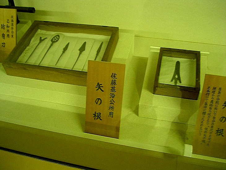 継信を殺した「恨みの矢の根」など。義経が抜いて納めたと伝わるが、これも真偽は不明。
