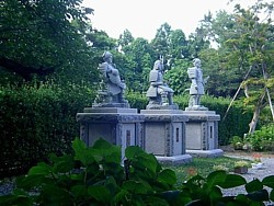 昭和十四年(1939)に再建した。像は宮城県出身の彫刻家・小室達(仙台城本丸の伊達政宗騎馬像(供出後の復元品)の作者)の