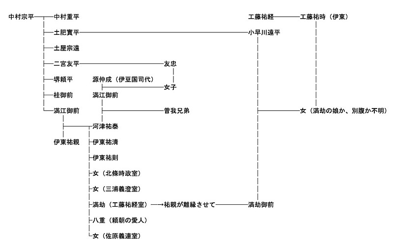 相模の中村氏と伊豆の伊東氏を結ぶ縁戚関係 略図