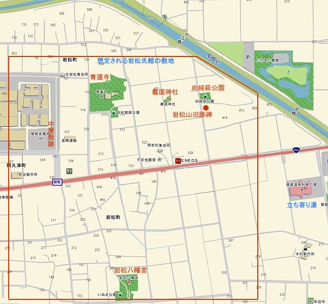 岩松氏館跡周辺の史跡地図