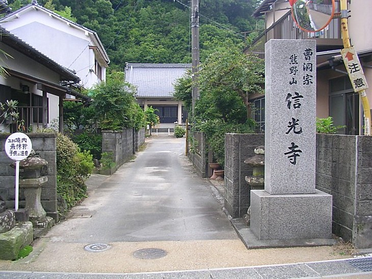 伊豆韮山の熊野山信光寺。信光が頼家の面を納め出家して菩提を弔ったのが最初と伝わる。