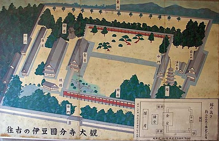 伊豆国分寺の推定復元図。聖武天皇詔勅による国分寺(金光明四天王護国之寺)の一つ。