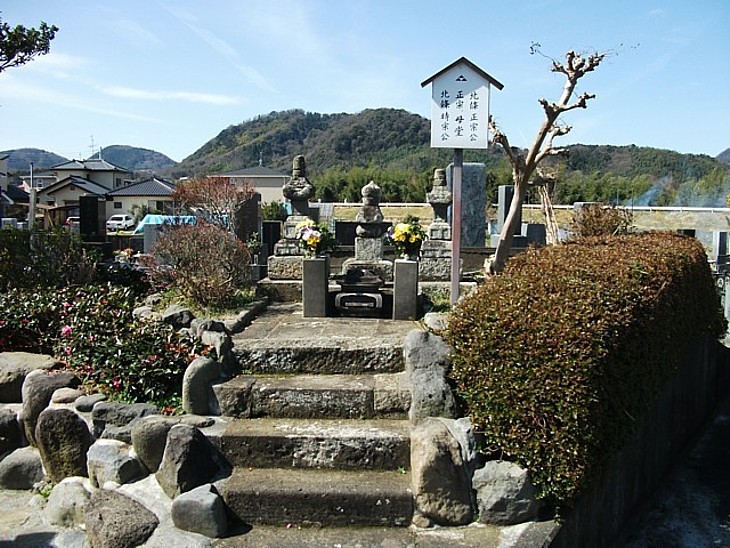 左から、正宗の父(八代執権時宗)の墓、正宗の母(時宗側室?)の墓、開基北條正宗の墓。