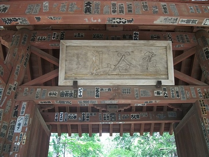 山門に架かる亀谷山の扁額。八幡宮のある「鶴岡」に対して「亀谷」の言い回しが面白い