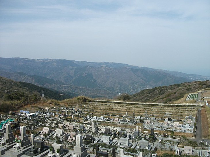 湯河原の市街地が一望できる。右側の山の向こう側が伊豆山神社、正面に真鶴半島が一望できる。