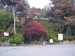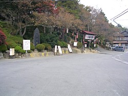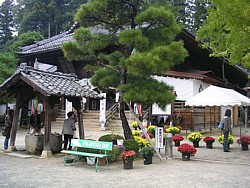 左: 金堂へ続く参道の左は主に観光バスを収容する駐車場で、右側には売店が並ぶ。金堂に近い店の蕎麦は手軽に食べられる割には旨い。