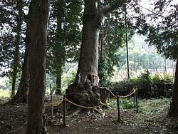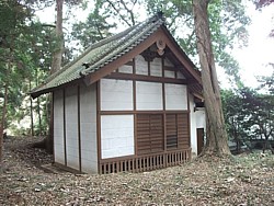 中: 鎌田の伝承では「小さな祠の前に茂る橘の小枝を握らせて「とどろきが淵」に向かった」と。その伝承以外には何の特徴もない鎮守である。