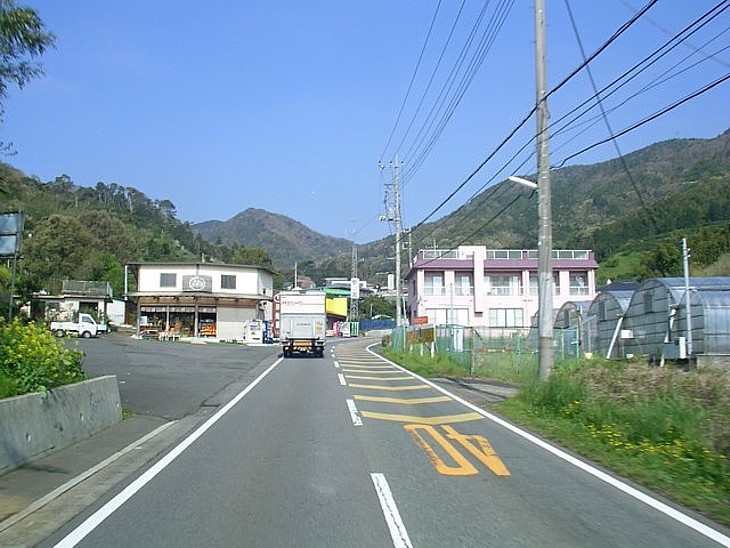 海岸から2kmで本格的な登り道になる。宇佐美観音を過ぎると登りのみが二車線に。