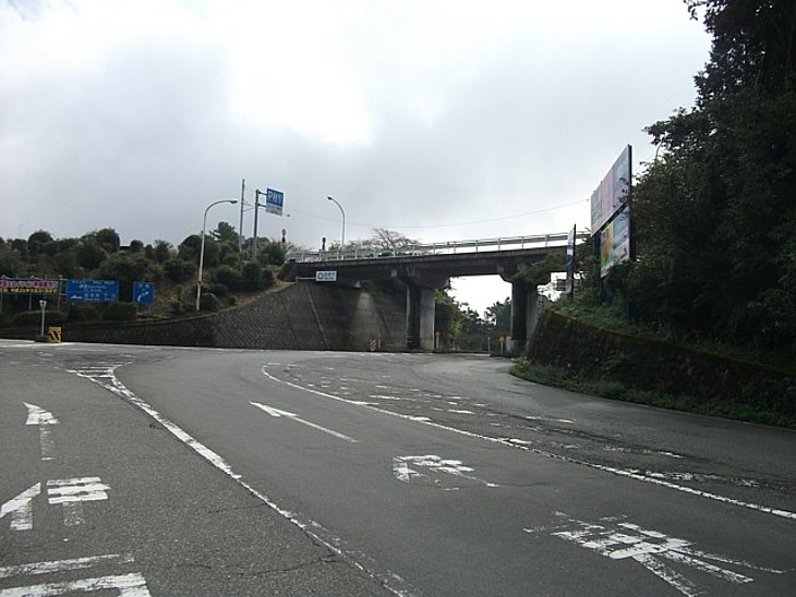大仁(伊豆の国市)側から見た亀石峠。すぐ左が伊豆スカイラインの亀石峠インターとPA。