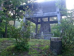 中: 八幡宮裏手の平場が金澤の柵の中枢部分「本丸」の跡。現在でも掘建て柱の跡が残っているという。ただし、室町時代には南部氏の子孫金沢氏が