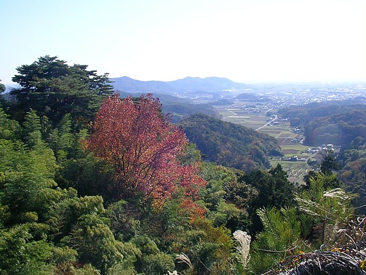 天狗岩から南の眺望。左側に張り出した山並みは万葉集に詠われた「みかも山」だろうか。