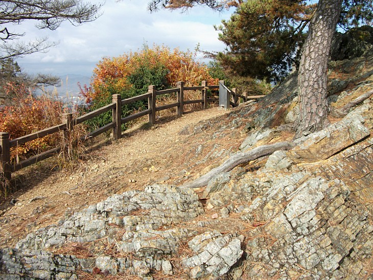 望楼の跡と伝わる天狗岩。「唐沢七名石」の一つで、南に突き出した岩が天狗の鼻に似ているため、と。